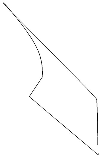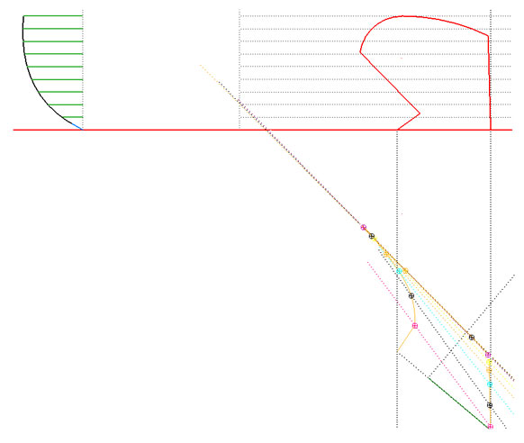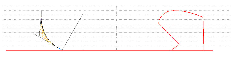 فاصله پاره خط های مابین این خط تا خط منحنی (اندازه خطوط مولد) به ترتیب زیرند: 8.30 ,13.89 ,17.69 ,20.31 ,22.05 ,23.13 ,23.65 ,23.76 ,23.43
