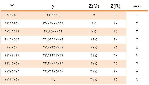 مسیر نقاط مستطیل پروفیل خاک (عمق a) را بررسی می کنیم. با استفاده از جدول شماره 5 کتاب برناکی پهنای تیغه انتخاب می شود.