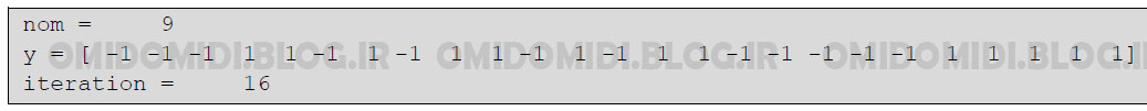 تابع فراخوانی شده و پس از محاسبات مقادیر پیش بینی، ماتریس خروجی و تعداد تکرار نهایی را به خروجی تحویل می دهد. برای عدد 9 نمونه نتایج زیر ارائه شد:
