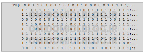 شبکه هاپفیلد مورد نظر را با دستور «nntool» و انتخاب نوع شبکه هاپفیلد ایجاد میکنیم. برای ایجاد این نوع شبکه برنامه تنها از کاربر ماتریس اهداف را میخواهد. ماتریس اهداف را اینگونه تعریف میکنیم: